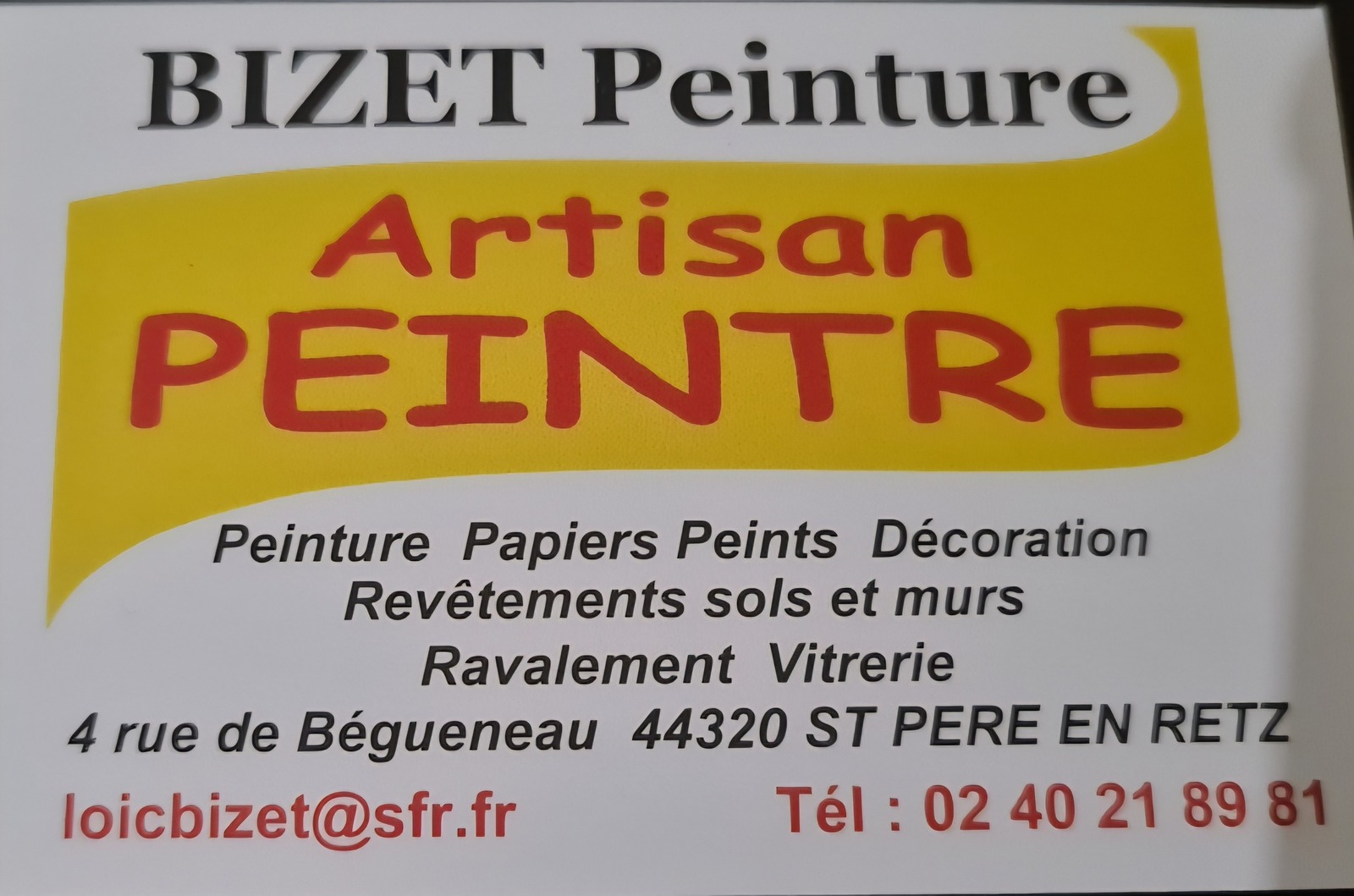 - BIZET PEINTURE - L'entreprise est située sur la commune de SAINT PERE EN RETZ Vous souhaitez faire des travaux de peinture, contactez notre partenaire au 02.40.21.89.81.