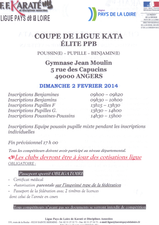 RDV 11h pour covoiturage parking de la périscolaire/centre de loisirs des écoles primaires de Saint Père en Retz rue de Paimboeuf (direction Saint Viaud, la laiterie) pour les compétitieurs kata enfants et adultes qui vont à Angers l'après midi (il reste encore qq places).