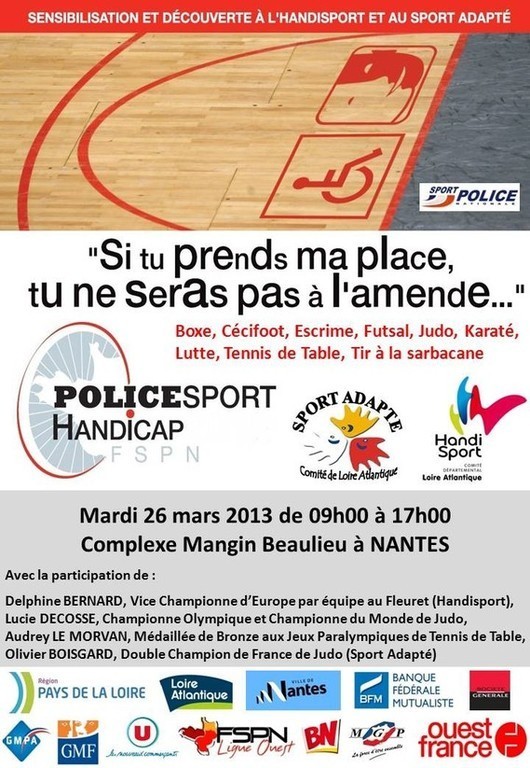 Mardi 26 mars 2013, de 09h à 17h, Complexe Mangin Beaulieu à NANTES, une journée Police Sport Handicap sera mise en place.
