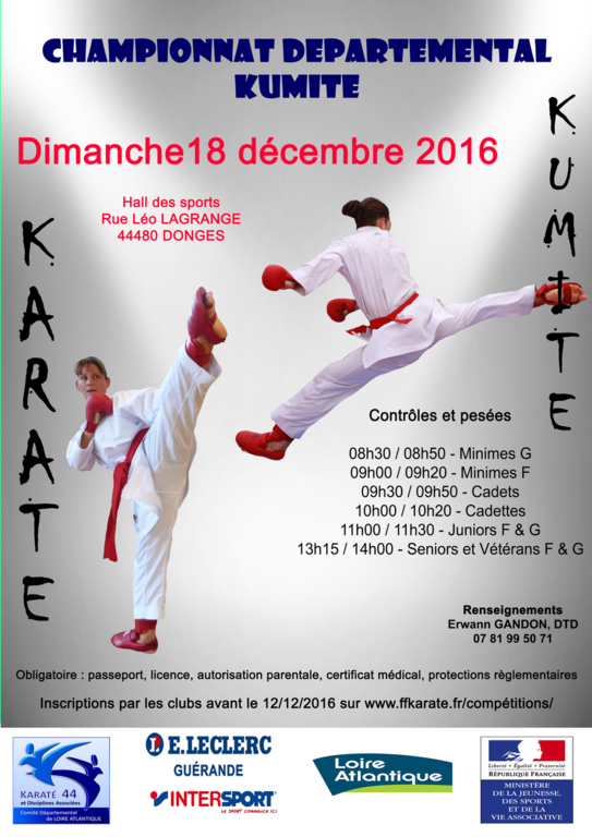 Merci à nos compétiteurs d'avoir représenté le club lors du championnat départemental kumité qui se déroulait le 18/12/2016 à DONGES.