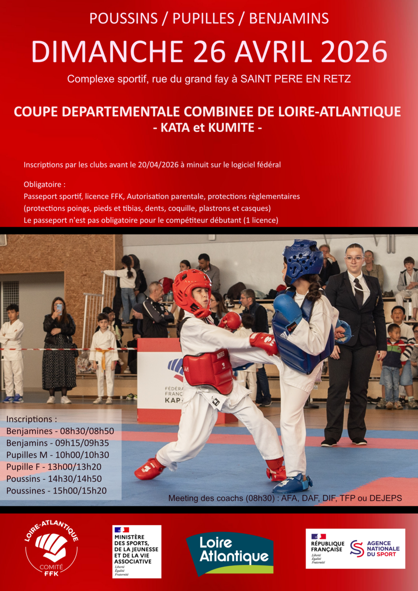 La Coupe Départementale Combinée des catégories Poussins/Pupilles/Benjamins se déroulera le dimanche 26 avril 2026.